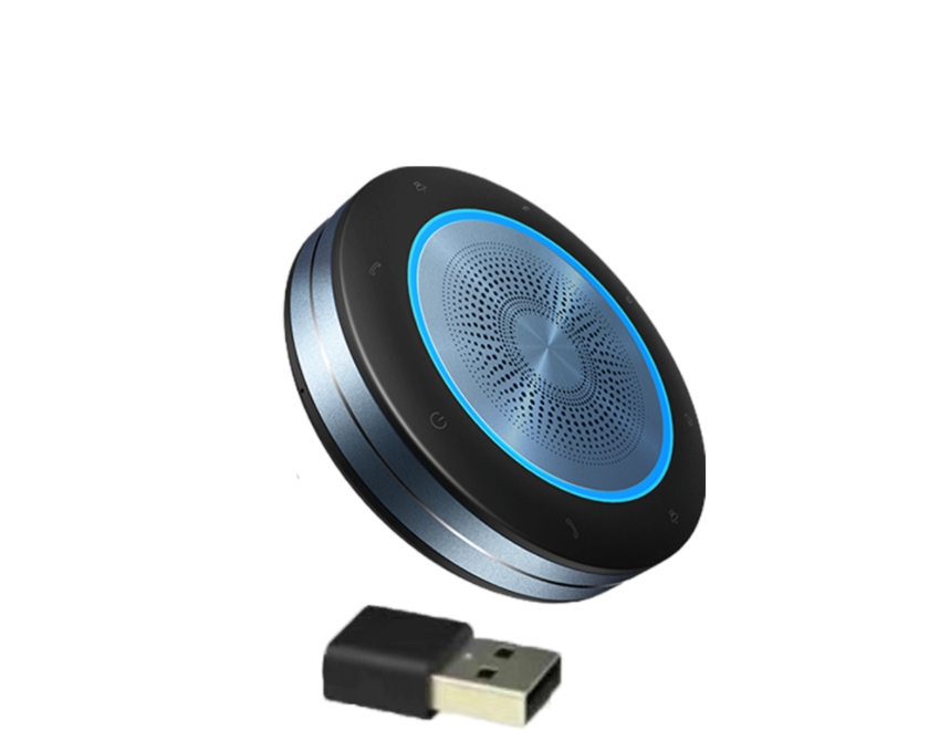 无线蓝牙连接,内置10W大喇叭,12米拾音距离4000mAh电池,连续8-12小时通话